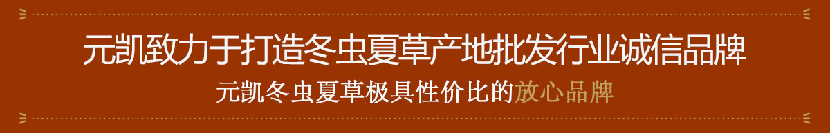 公司專業(yè)致力于青藏高原野生冬蟲夏草銷售、采收、精選包裝和現(xiàn)代化生產(chǎn)、研發(fā)等,并且在青海玉樹西藏那曲設(shè)立了采購站,專門采購地道的野生冬蟲夏草,充分保證了產(chǎn)品的品質(zhì)。元凱長期向國內(nèi)眾多著名藥材經(jīng)銷商、港澳臺以及東南亞中藥材采購商供應(yīng)冬蟲夏草,多次被省、市、縣授予多種榮譽稱號“青海省知名商標(biāo)”、“青海省誠信單位”、“青海省名優(yōu)企業(yè)”、“守合同重信用企業(yè)”等。